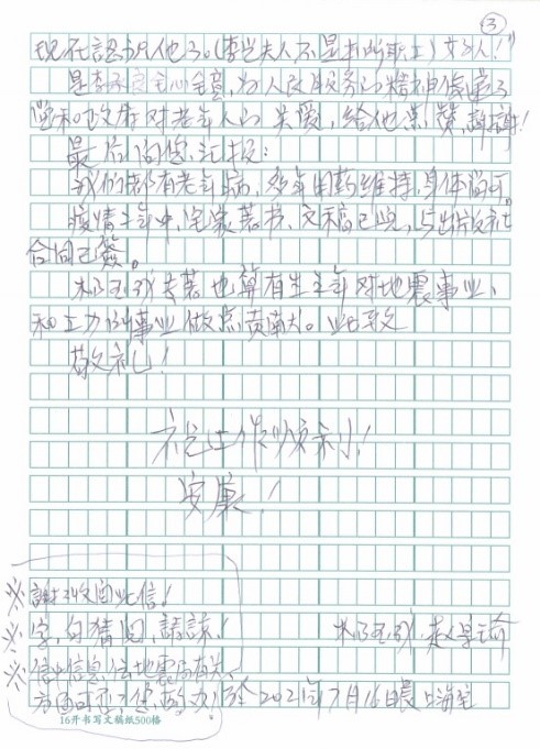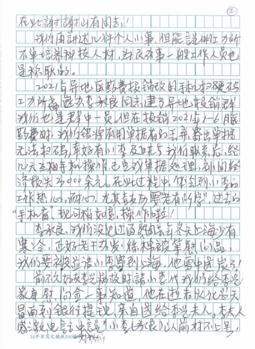 發布時間: 2021-08-20 點擊數量:5465“以人性化服務和溫情服務為宗旨,努力做到讓老同志方便、放心、滿意,感受到家人般的溫暖”,這是離退休辦公室的服務宗旨。近日,一封感謝信從遠在上海定居的老同志寄來,信里表達了對工力所在建黨百年之際取得的成績感到驕傲和自豪,重點感謝了離退辦同志對異地居住和就醫的老同志給予生活上和就醫方面的關心和幫助。他飽含感激之情地講述了幾件事,他說“我們講述幾件個人小事,但能說明工力所不單培養科技人才,為民辦事一般工作人員也是稱職的。”“全心全意為人民服務的精神傳遞了黨和政府對老年人的關愛”……老同志口中的小事都是我們為群眾服務的大事,我們要為群眾辦真事、真辦事。