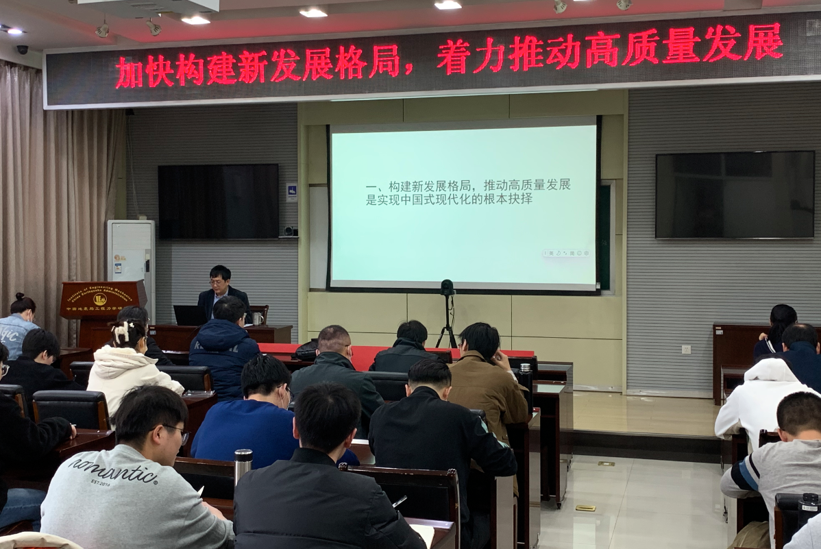 3月21日,黨委委員、副所長溫瑞智同志以“加快構(gòu)建新發(fā)展格局 著力推動高質(zhì)量發(fā)展”為題,為強(qiáng)震動觀測與成果轉(zhuǎn)化中心黨支部、碩士研究生第一黨支部、哈爾濱博士研究生黨支部全體黨員宣講黨的二十大精神。