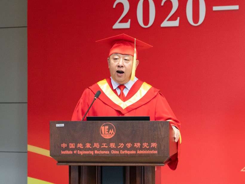 在熱烈的掌聲中,李山有深情寄語廣大畢業生。他首先代表工力所全體教職員工,向畢業生們致以熱烈的祝賀和美好的祝愿。同時,他帶領大家回顧了工力所在新時代邁向世界一流的筑夢歷程,為即將踏上人生新征程的畢業生們作出了三點期許:一是心懷“國之大者”,扎根人民、奉獻國家。二是踐行“所訓”,做有作為的工力所人。希望各位畢業生秉承“嚴謹、求真、博學、創新”,為工力所增光添彩。三是永葆健康快樂,做時代前列的奮斗者。希望各位畢業生始終保持陽光心態,做人生的強者。