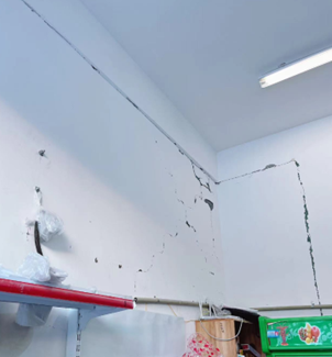 圖1 某框架結構填充墻與梁間出現(xiàn)裂縫、墻體自身出現(xiàn)斜裂縫