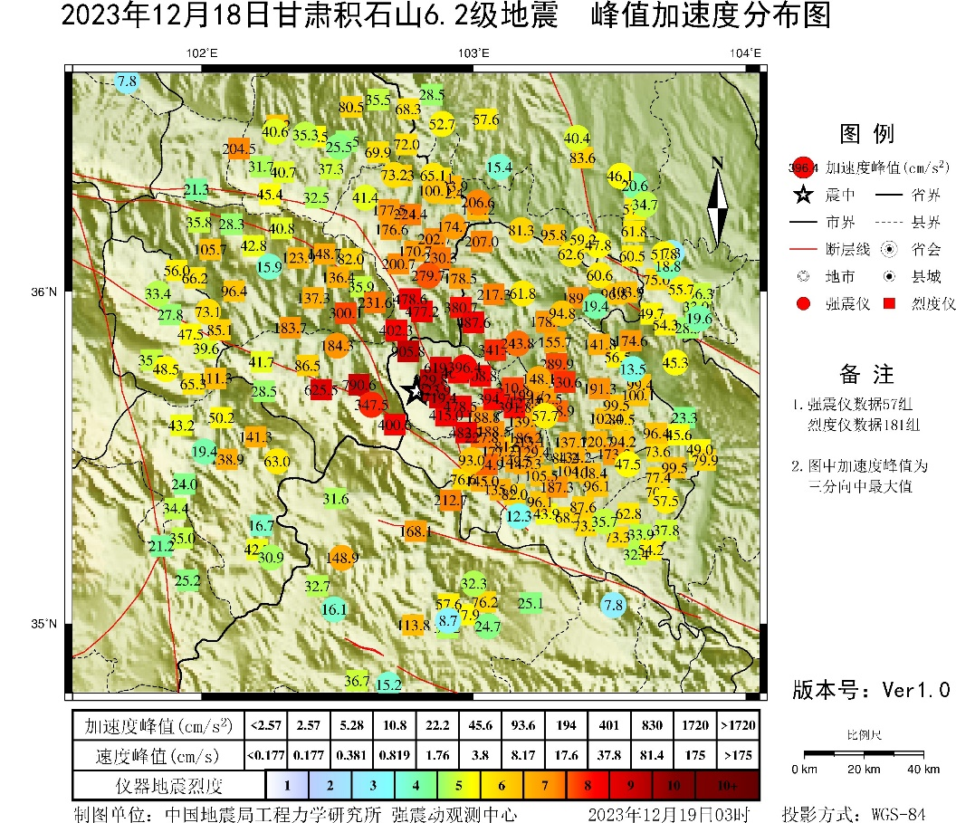 發布時間: 2023-12-19 點擊數量:8528中國地震臺網正式測定:12月18日23時59分,在甘肅臨夏州積石山縣(北緯35.7度,東經102.79度)發生6.2級地震,震源深度10公里。