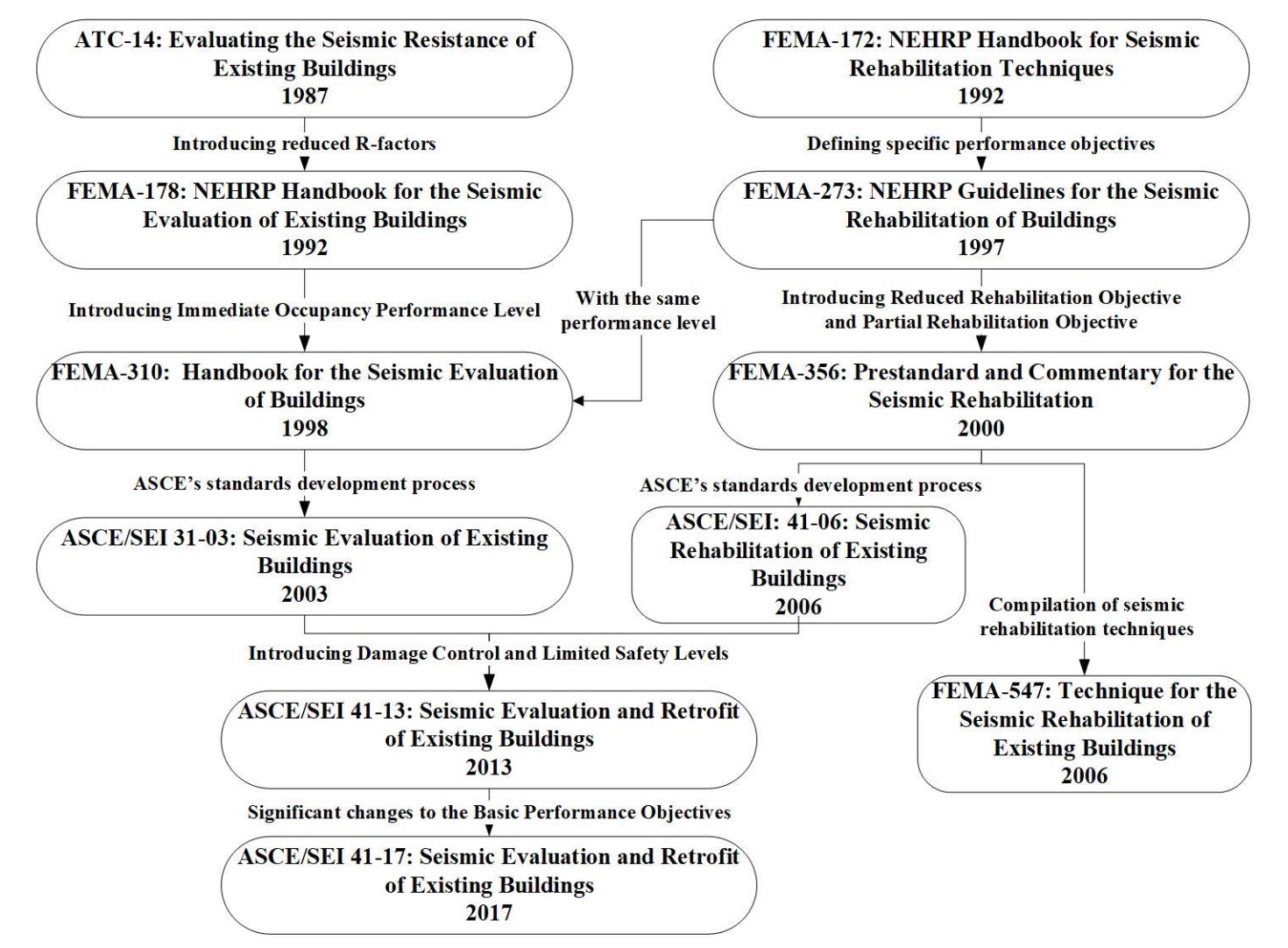 圖1 美國抗震鑒定與加固相關研究報告與技術標準體系
