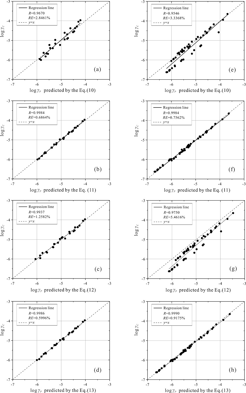4 、對于II、III類(或D、E類)場地,與兩個相鄰強震儀之間峰值質點速度和鉆孔法實測的剪切波速或/和中心深度組合相關的2個原位剪切應變剖面模型能夠高精度地預測任一巖土臺陣的原位剪切應變剖面。