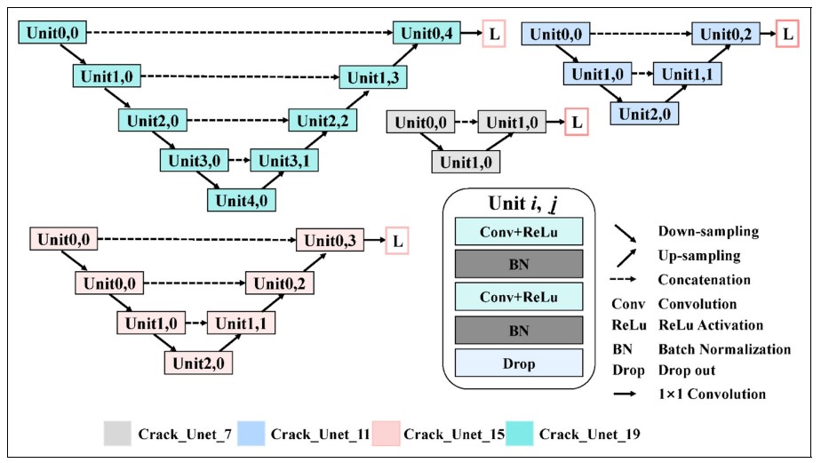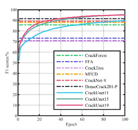 該成果在結構健康監測領域的國際權威期刊《Structural Health Monitoring-An International Journal》發表。(Zhang Lingxin, Shen Junkai*, Zhu Baijie. A research on an improved Unet-based concrete crack detection algorithm [J]. Structural Health Monitoring, 2021, 20(4): 1864-1879. DOI: https://doi.org/10.1177/1475921720940068) (IF: 5.929, *通訊作者)