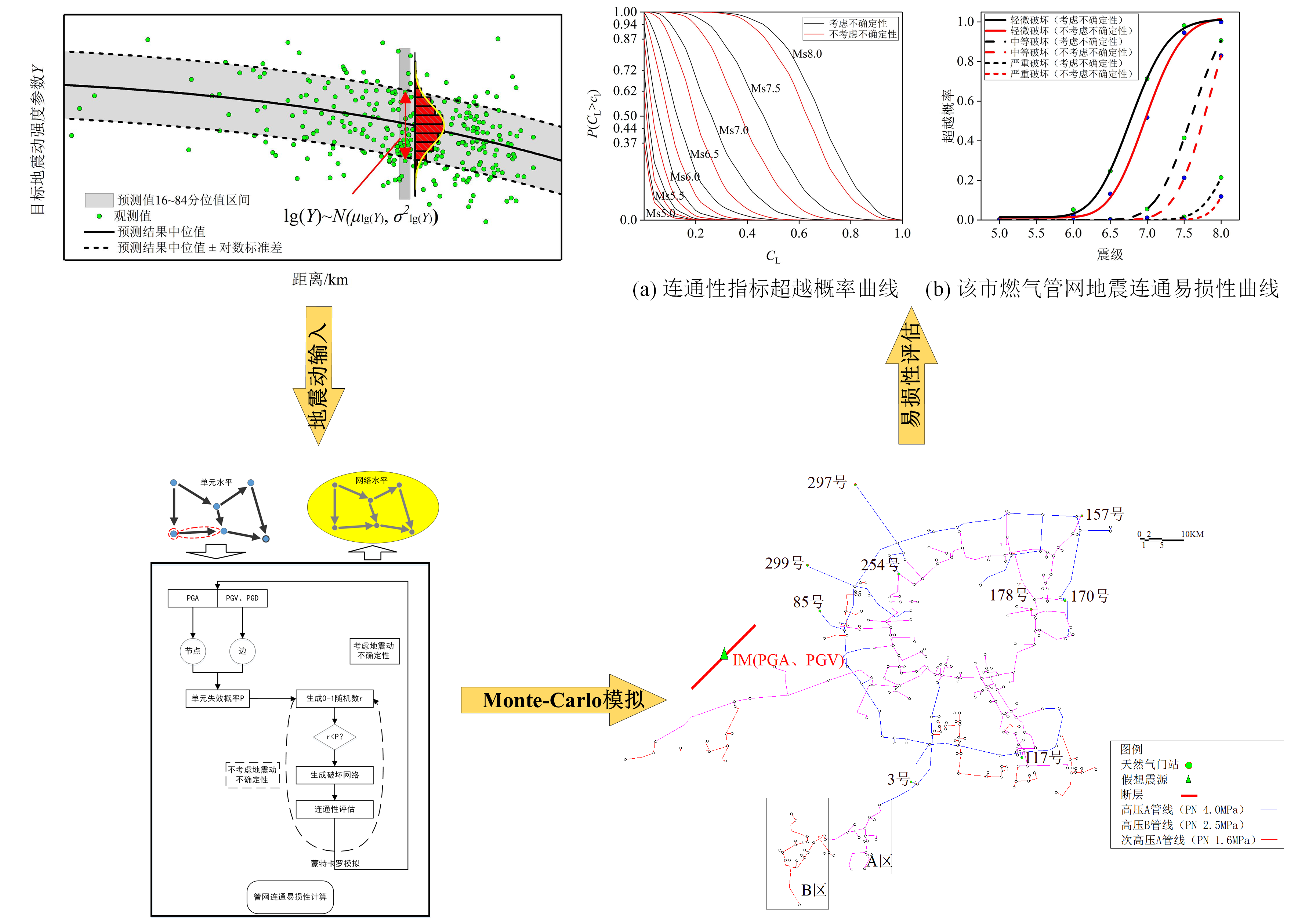 圖2 城市燃?xì)夤芫W(wǎng)抗震韌性定量評(píng)估流程與結(jié)果