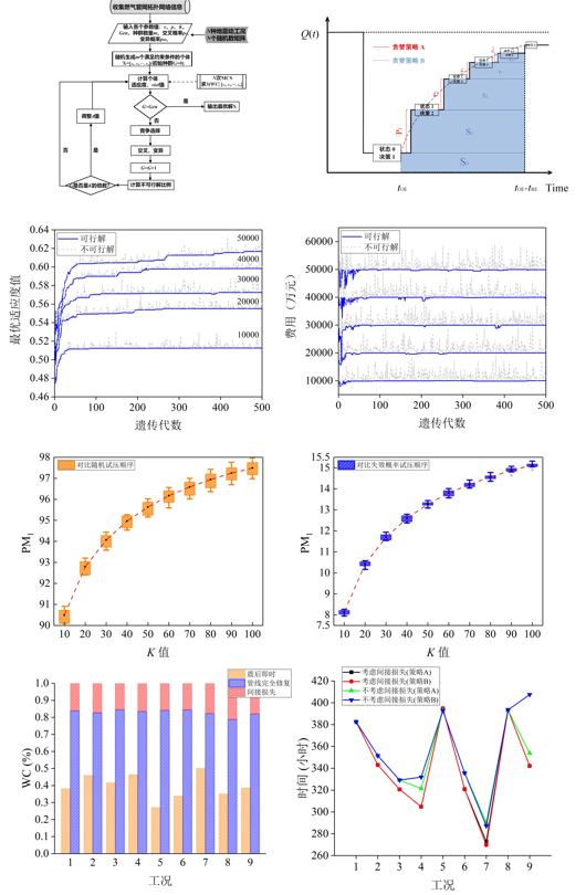 (3)將城市燃?xì)夤芫W(wǎng)的抗震、救災(zāi)過(guò)程分為三個(gè)階段,基于不同的計(jì)算機(jī)優(yōu)化方法對(duì)各階段的抗震韌性進(jìn)行提高。第一階段在有限的政府資金預(yù)算下,利用自適應(yīng)比例與直接比較-遺傳算法(FPDC-GA)得到震前最優(yōu)加固或更換管道的方案,以最大化燃?xì)夤芫W(wǎng)的抗震魯棒性。第二階段根據(jù)震后中斷供氣的用戶端節(jié)點(diǎn)分布情況,采用多標(biāo)簽K近鄰算法(ML-KNN)預(yù)測(cè)震后泄漏管道,計(jì)算震后優(yōu)化的管道試壓順序,以達(dá)到高效率排查失效管道從而快速進(jìn)入修復(fù)階段的目的。第三階段基于貪心策略提出一種震后管道修復(fù)順序優(yōu)化方法,以提升燃?xì)夤芫W(wǎng)功能恢復(fù)的效率。將這三階段提升方法應(yīng)用于中國(guó)華北某城市燃?xì)夤芫W(wǎng)抗震韌性提升工作中,驗(yàn)證了所提方法的可行性。相關(guān)技術(shù)細(xì)節(jié)可查閱發(fā)表在《Soil Dynamic and Earthquake Engineering》上的論文。